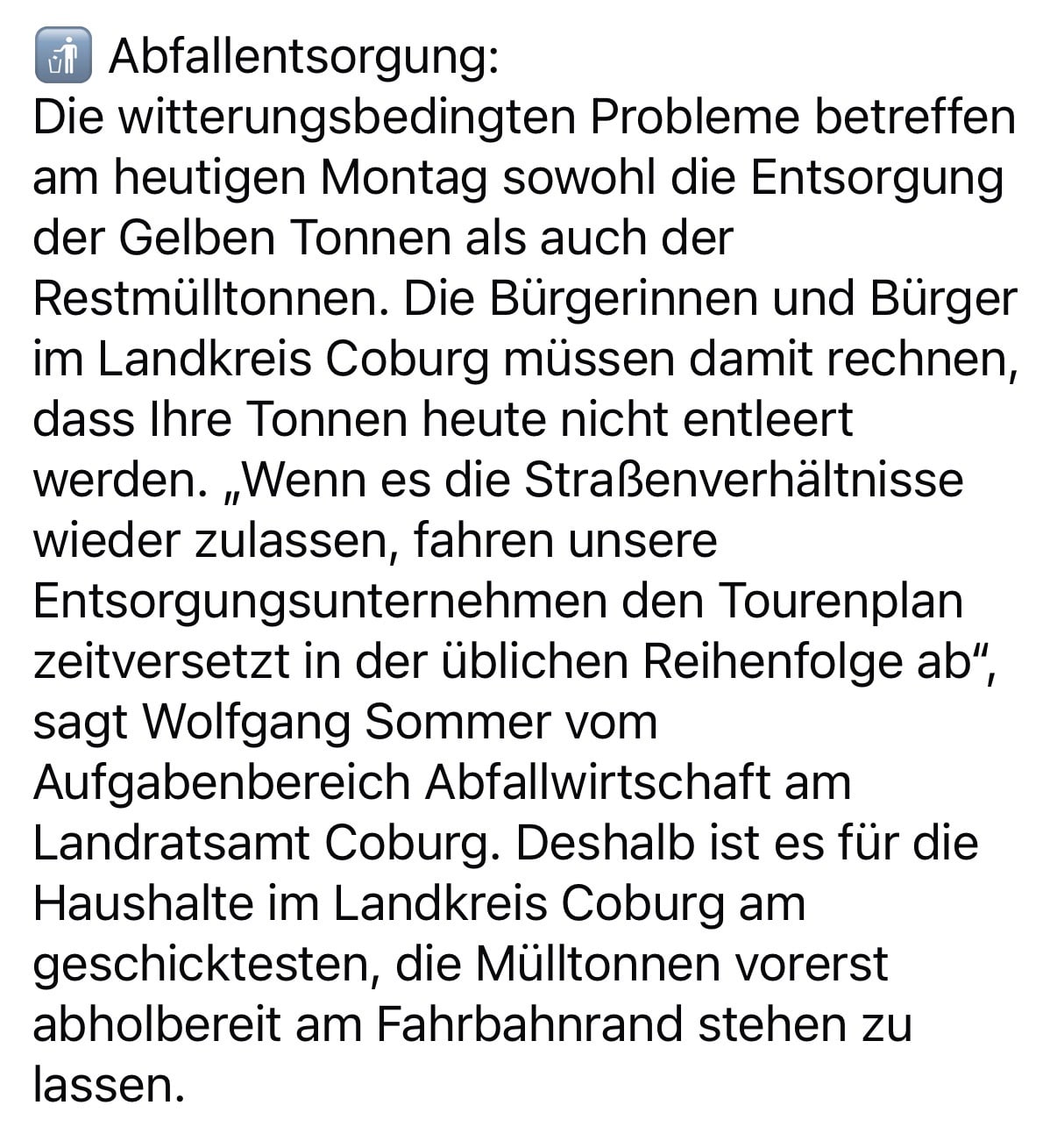 Die Abfallwirtschaft von Coburg gibt zeitnah einen Nachfahrtermin bekannt.